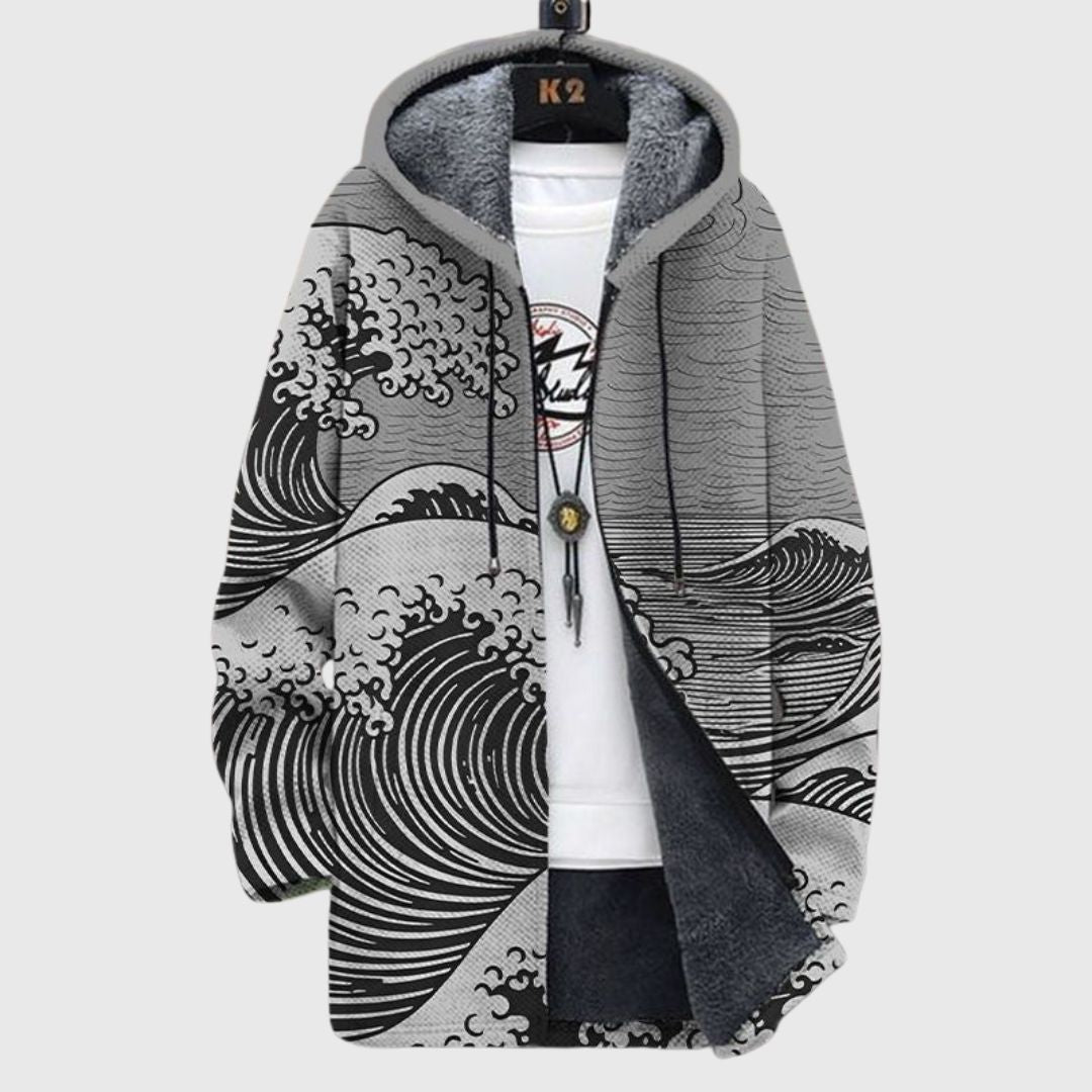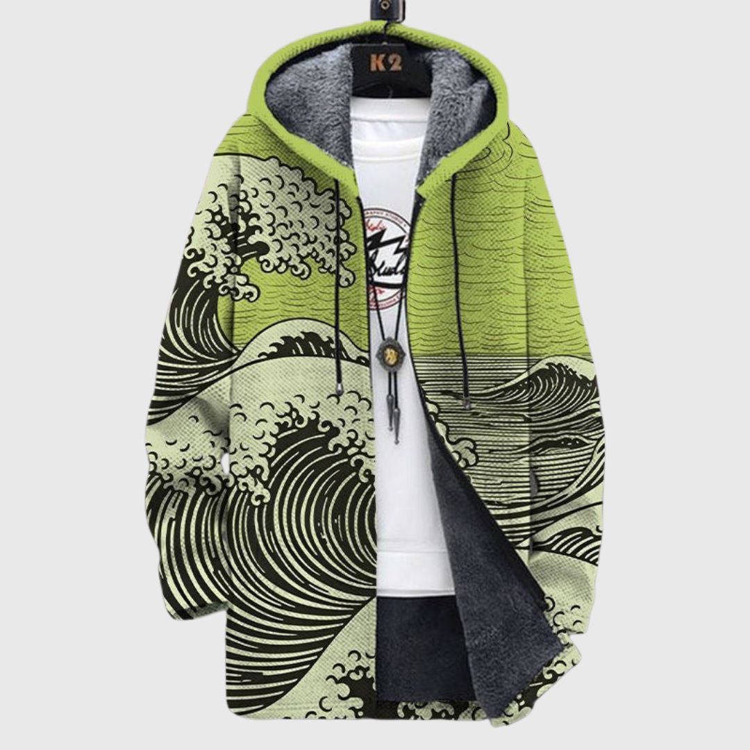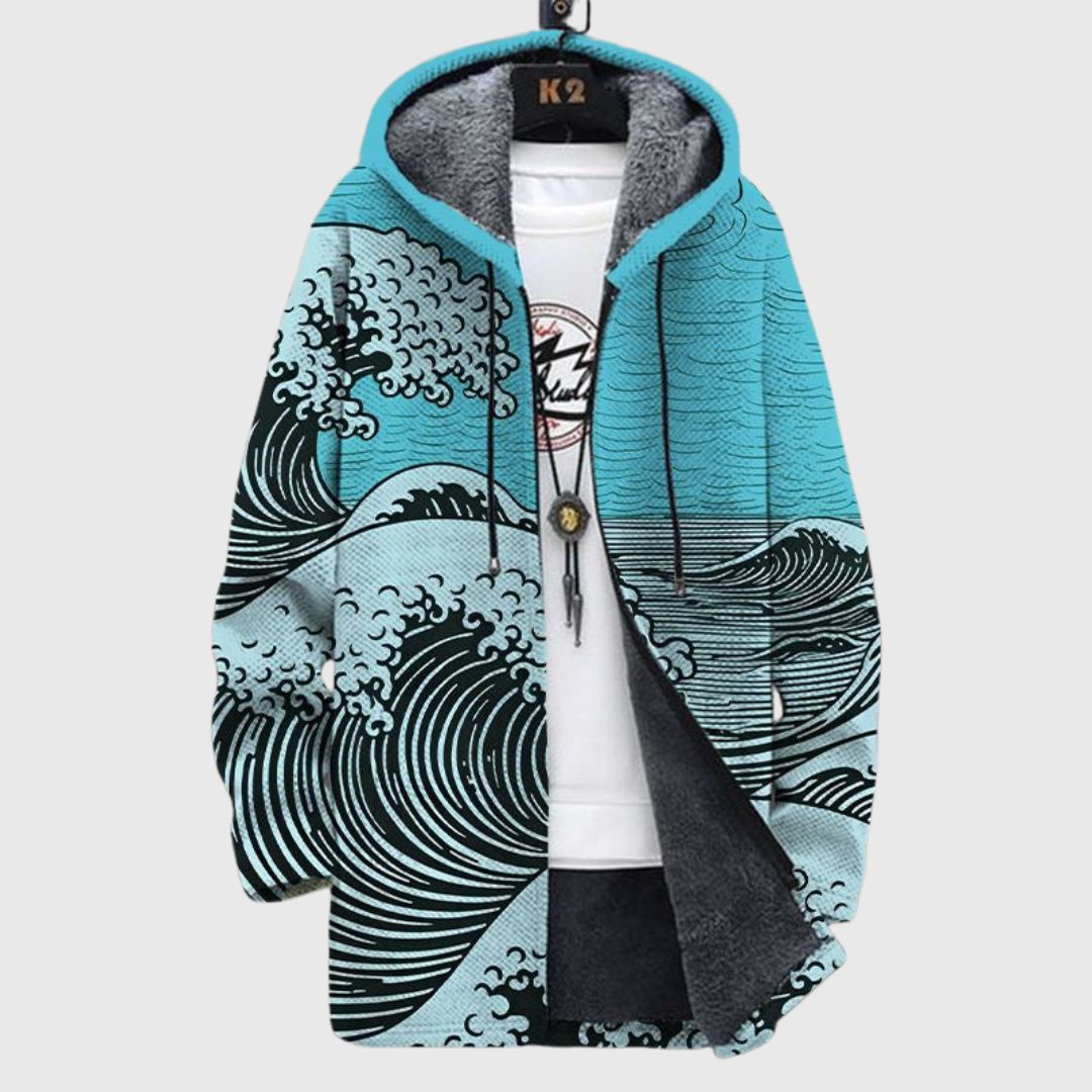 Jej dopasowany krój subtelnie podkreśla sylwetkę, a unikalny artystyczny design sprawia, że ta kurtka staje się niezbędnym elementem Twojej garderoby.