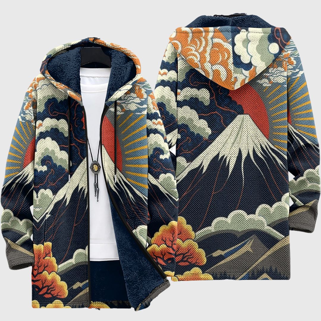 Jej dopasowany krój subtelnie eksponuje sylwetkę, a jej unikalny artystyczny design sprawia, że ta kurtka staje się niezbędnym elementem Twojej garderoby.