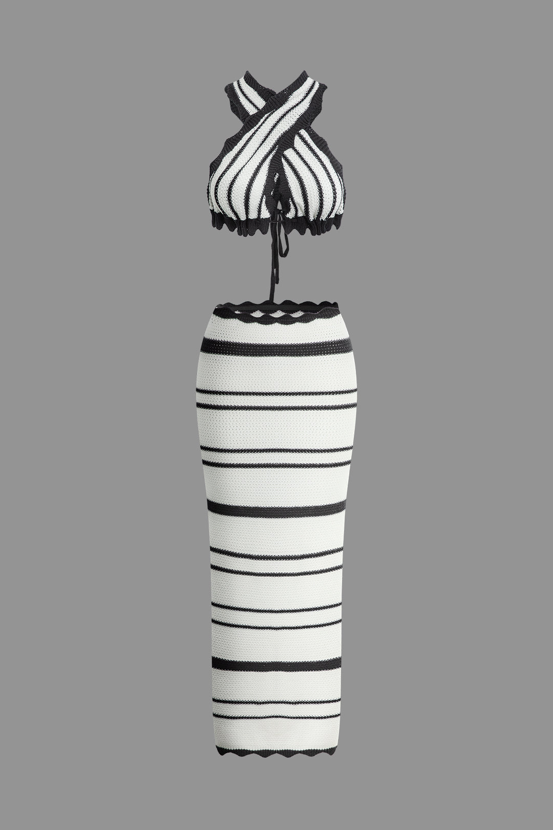 - Zestaw Allure zawiera sweter z okrągłym dekoltem i pasującą spódnicę.