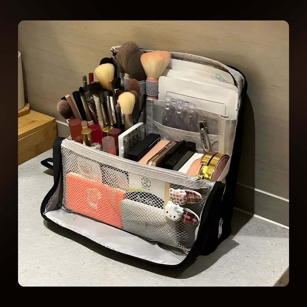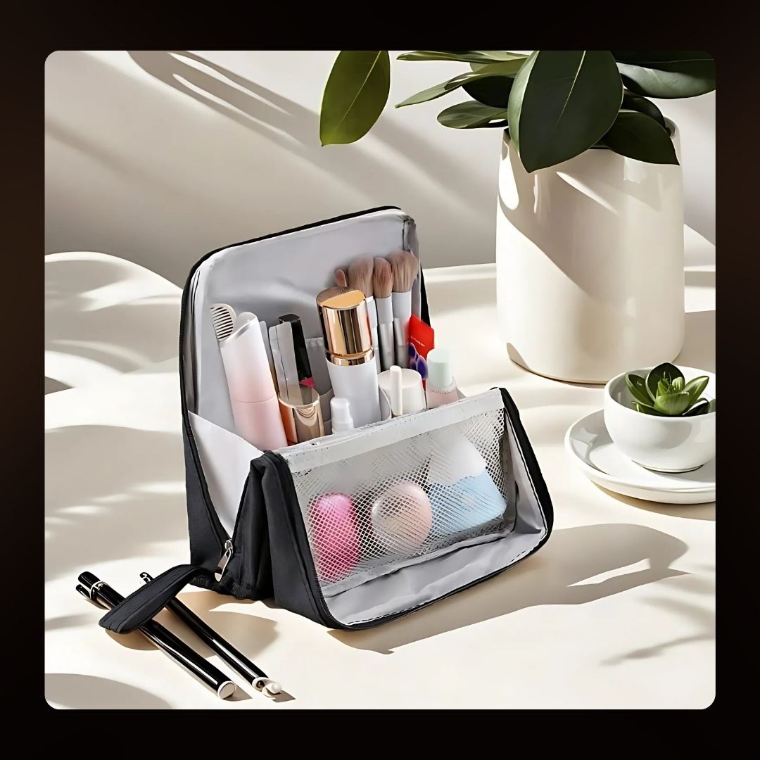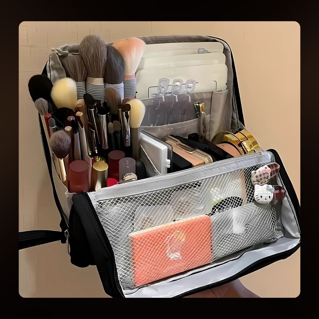 Strukturalny układ utrzymuje każdy pędzel, paletę i serum dokładnie tam, gdzie powinny być—koniec z przeszukiwaniem i rozlaniem.