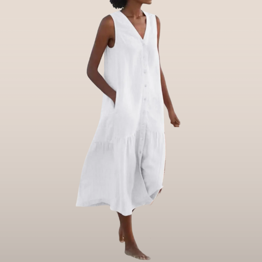 Malika – Sukienka bez rękawów z guzikiem