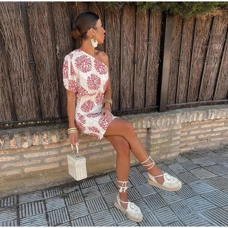 Sukienka Mara Trendy na jedno ramię łączy elegancję z nowoczesnym stylem. Ta sukienka jest idealna na każdą okazję, od wieczornego wyjścia po letni dzień. Figurny krój i modny design sprawiają, że zawsze wyglądasz najlepiej.