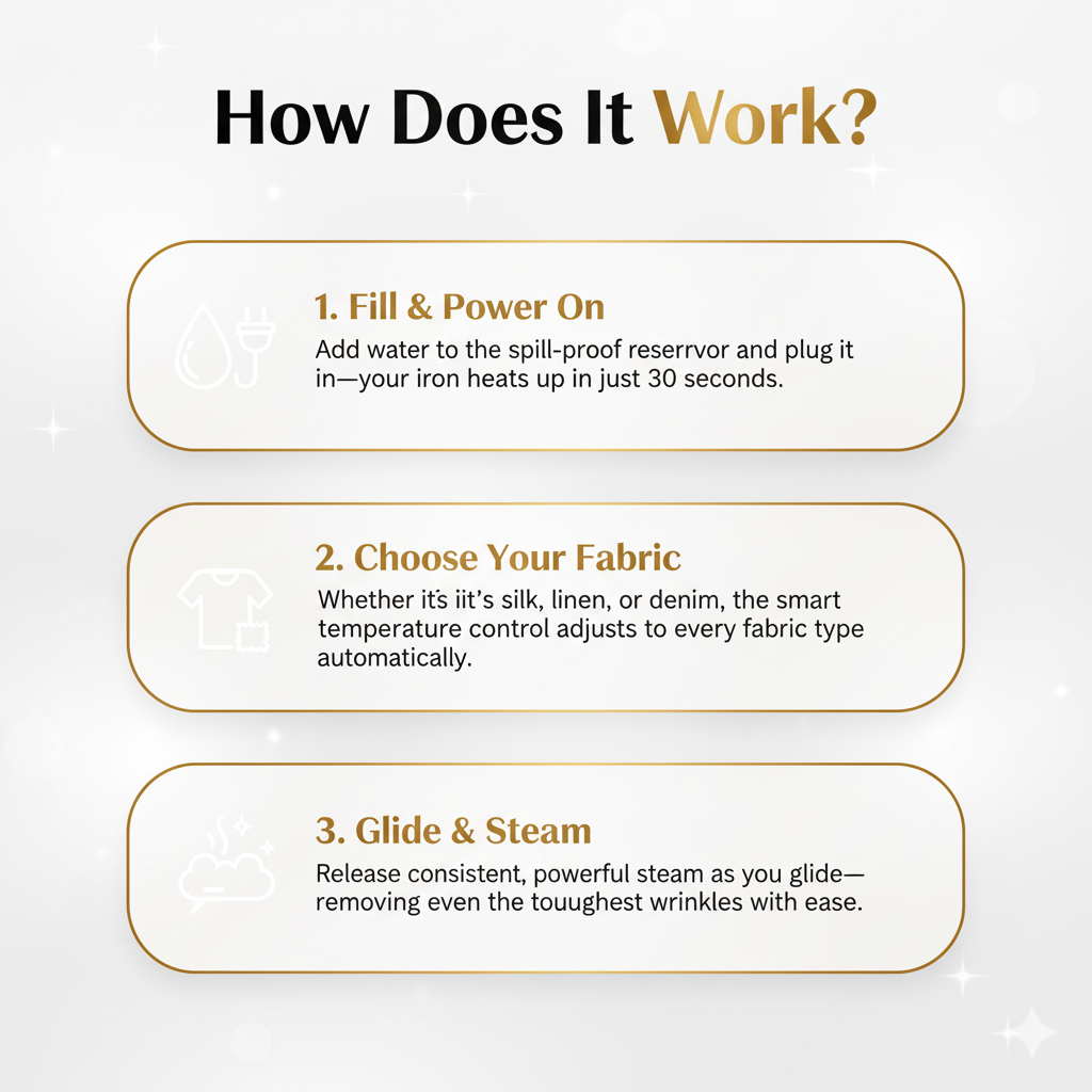 Ulepsz swoje urządzenie na projekt, który w końcu nadąża za Tobą. Szybsze, mądrzejsze i łatwe do przenoszenia, to żelazko eliminuje najgorsze aspekty tej czynności—wolne nagrzewanie, duża waga, bałagan z wyciekami—tak abyś mógł skupić się na najlepszej części: wyglądać ostro.